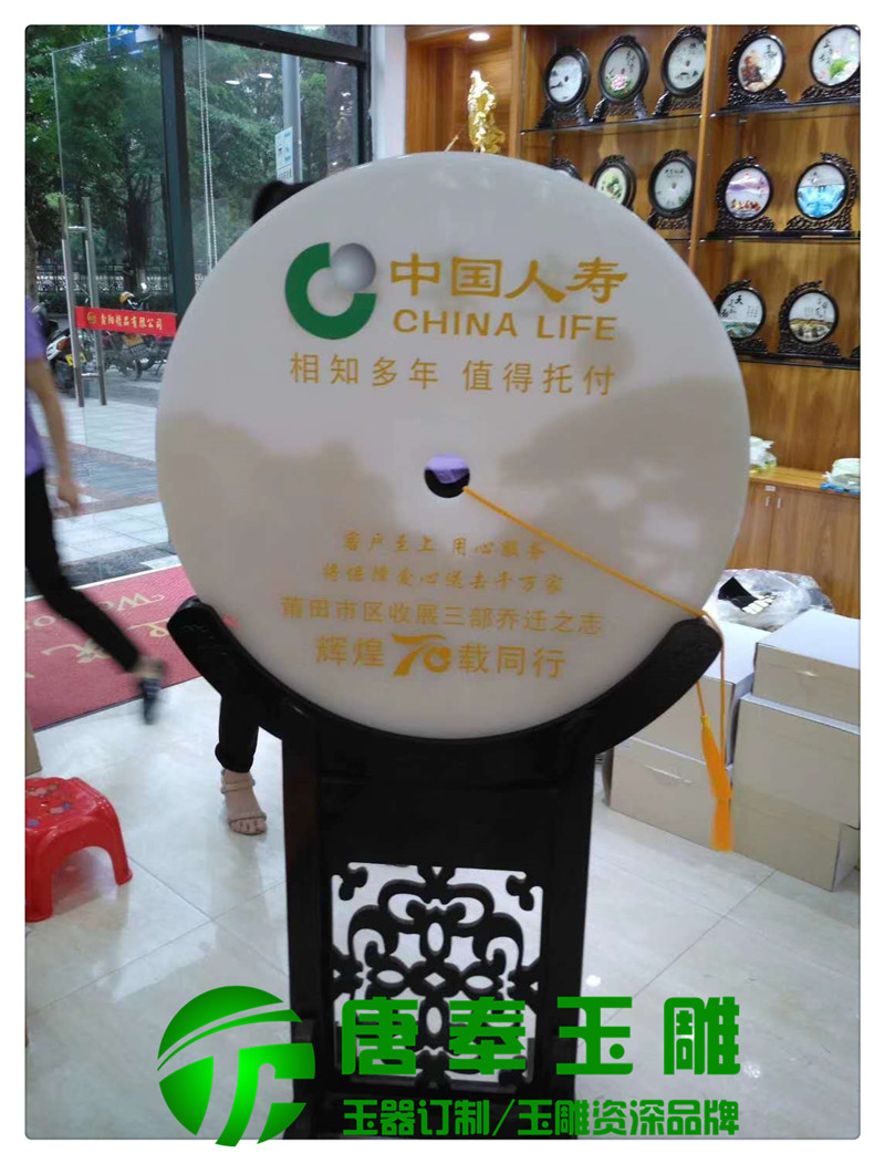 中國人壽周年紀念浮雕公司logo玉平安扣用于竣工開業、上市慶典、形象宣傳、入司紀念、團體聚會等地方,浮雕圖案,公司logo,刻字等,既有品位又有收藏價值。