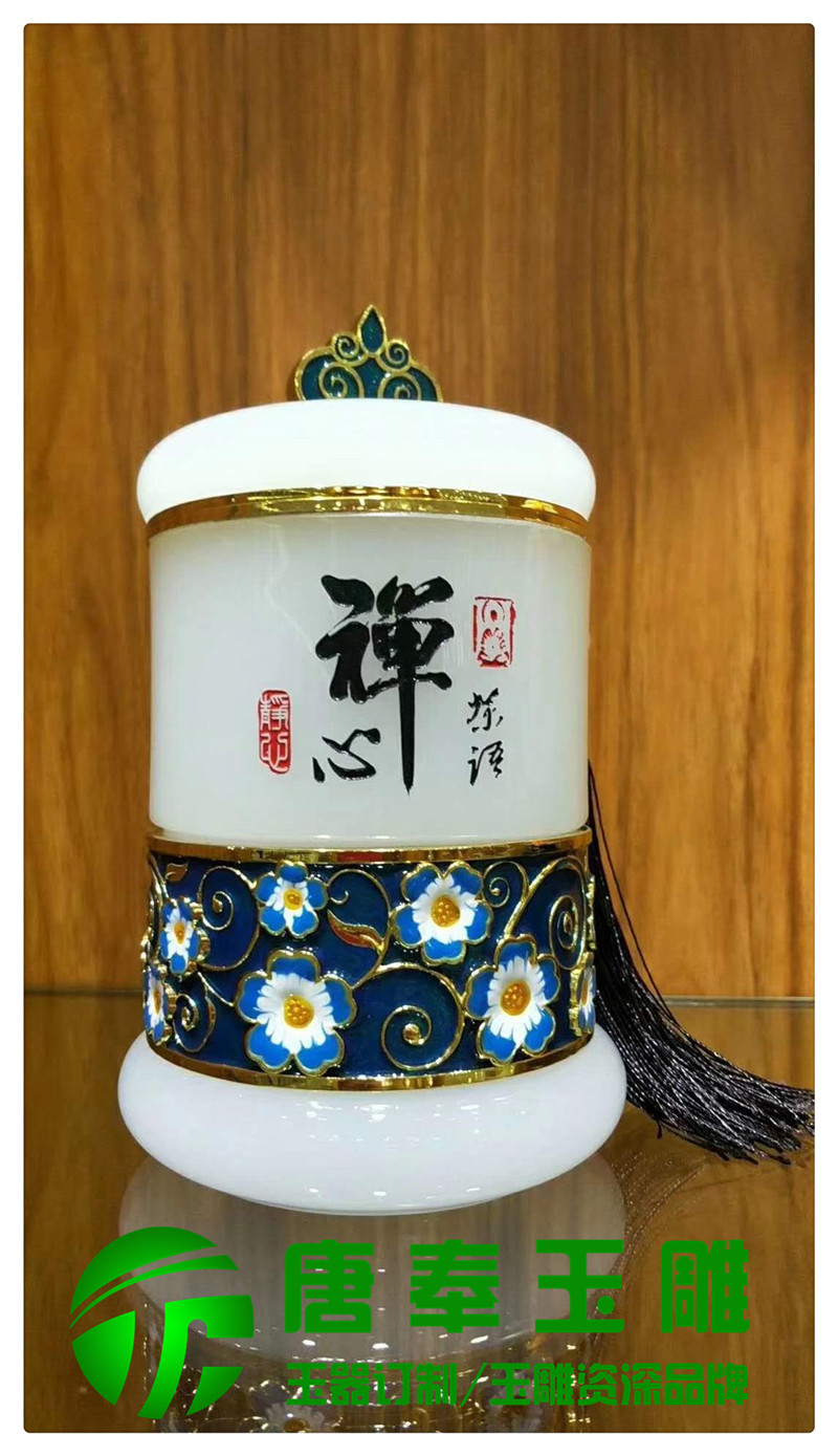 玉茶葉罐可以看用會議活動、形象宣傳、福利表彰、文化衍生等地方,浮雕圖案,公司logo,刻字等,既有品位又有收藏價值。