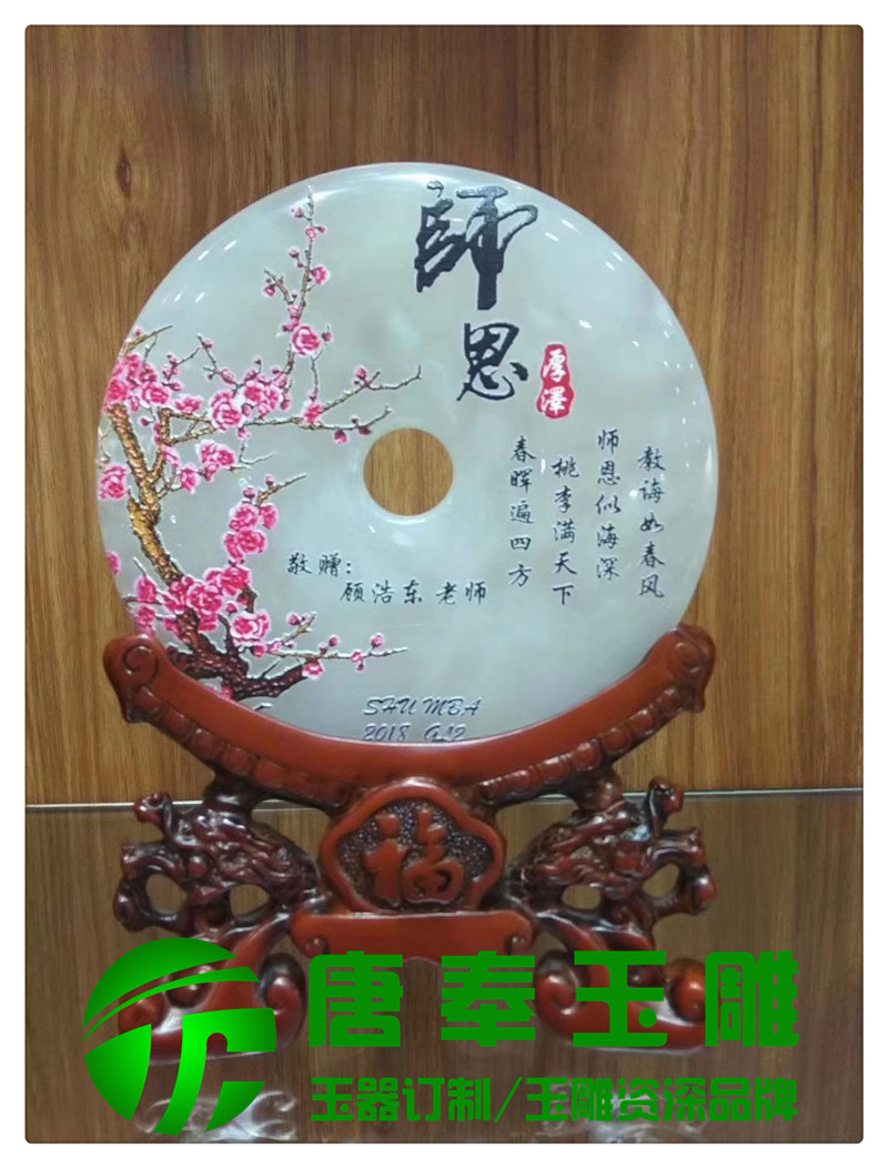 回饋師恩浮雕圖案玉平安扣用于畢業(yè)紀念、生日壽辰、入司紀念、商務(wù)饋贈等地方,浮雕圖案,公司logo,刻字等,既有品位又有收藏價值。